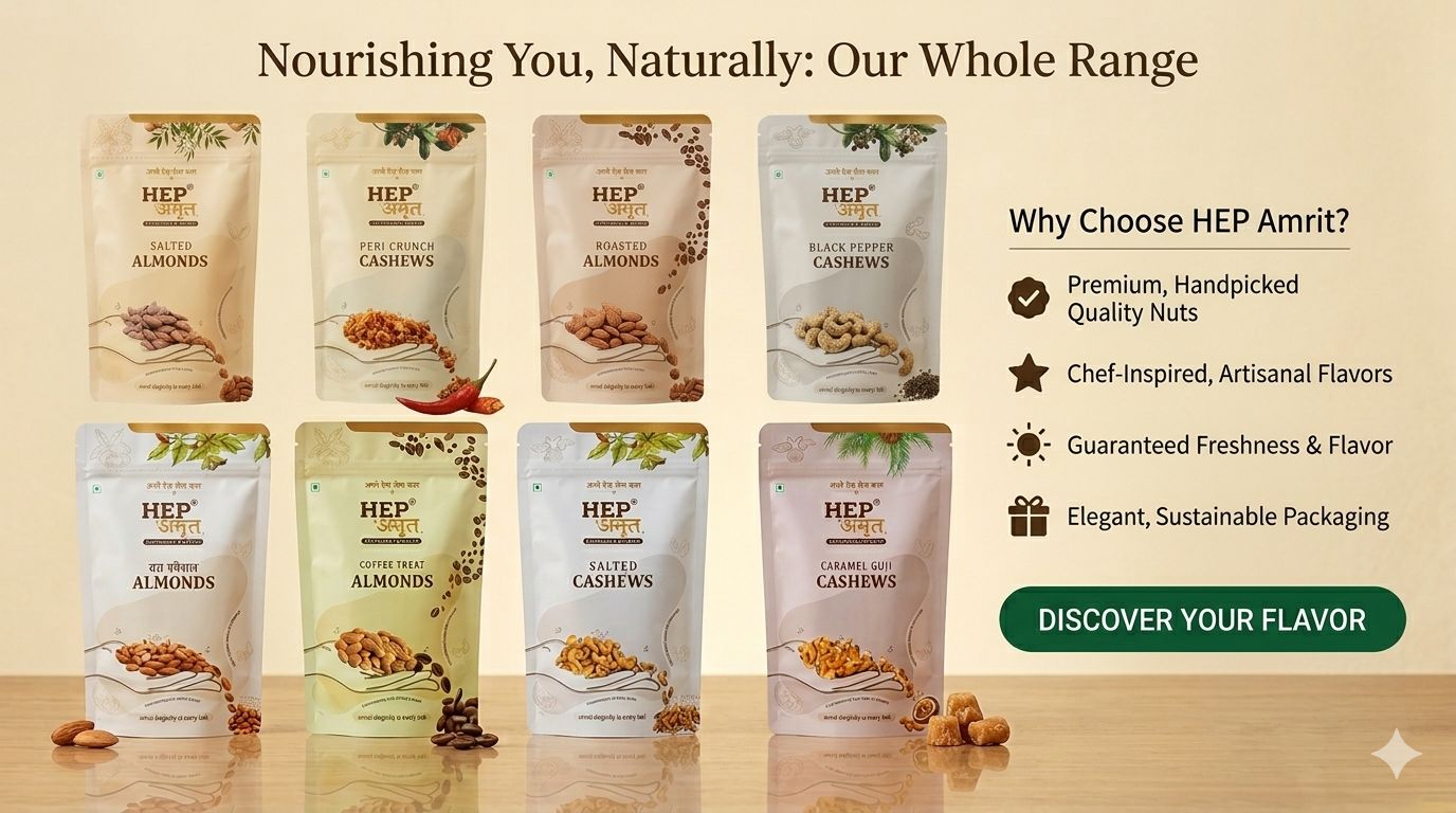 Stop settling for oily, low-energy fasting snacks. Discover how HEP Amrut is redefining the Vrat Thali with premium, handpicked Vrat Special Almonds and Cashews. Designed for the modern achiever, these...